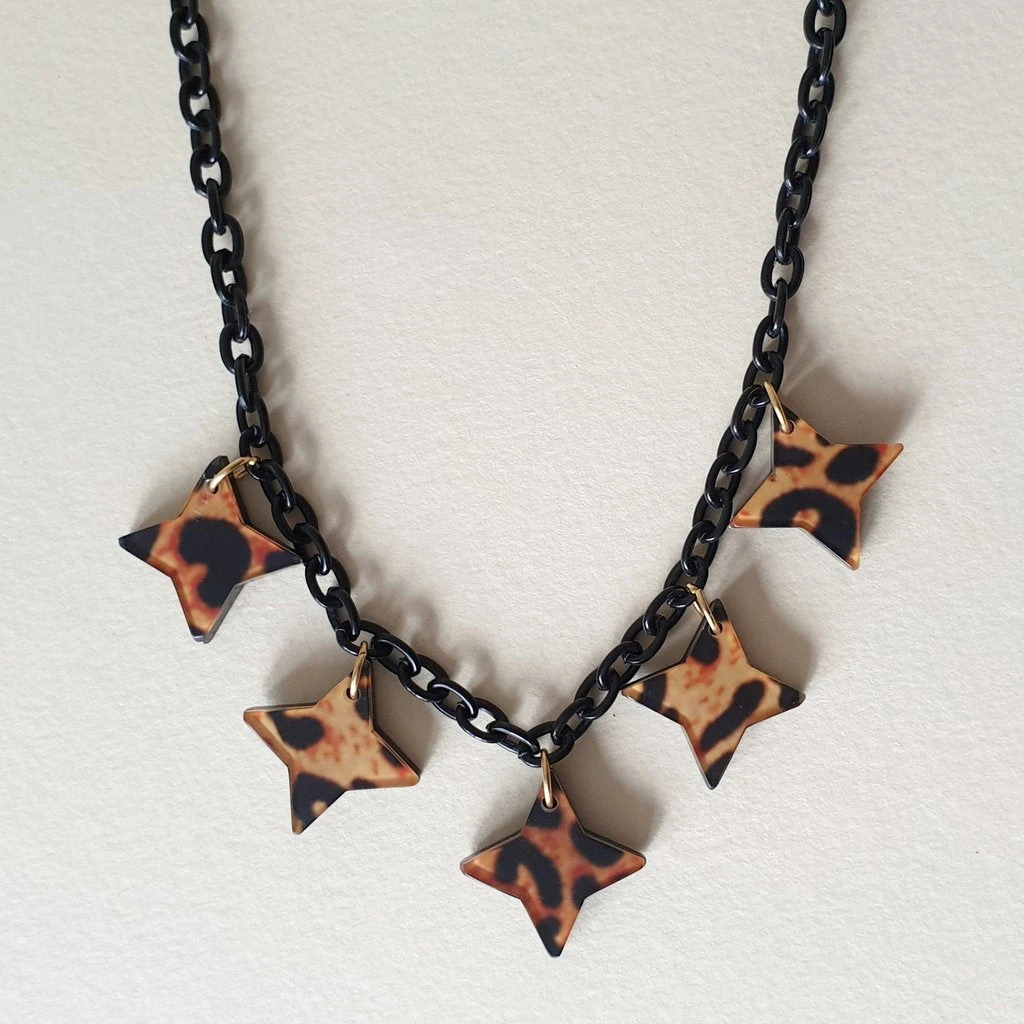 Sparkle the fabulous 50’s with our Leopard Print Lola Starburst Necklace. Atomic star charms measuring approx 2.3cm x 2.3cm crafted in modern resin set with Leopard Print for some feline flair.