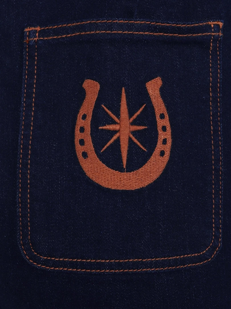 Be the queen of the rodeo with our Lulu Rodeo Dancer Jeans! She’s a pair of high-waisted skinny jeans, made from a fabric with a slight stretch for a comfortable, close fit. She has curved pockets at the front and patch pockets at the back, which feature embroidered horseshoes with the signature Collectif atomic star in the centre. She fastens at the front via a button fly and zipper, and she’s hemmed approximately at the ankle.