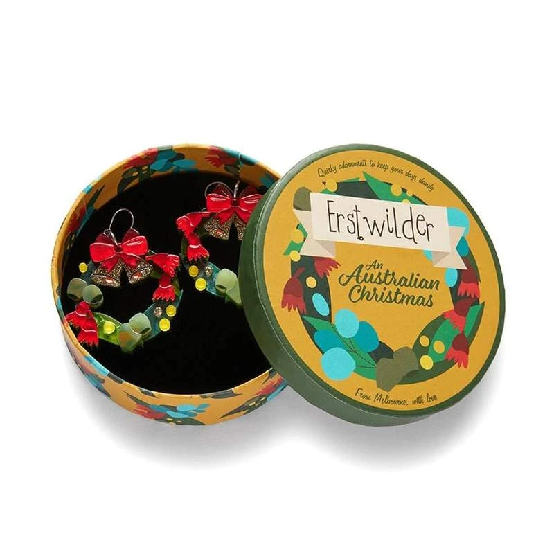 A Christmas classic with an Australian twist. These Christmas Wreath earrings, have been hand-assembled from a festive selection of resins, and features hand-painted details.