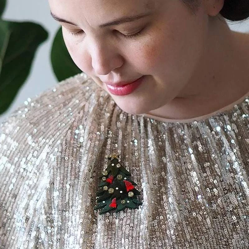 Not quite large enough to hang the ornaments from, this Christmas Tree brooch has been hand-assembled from terrific textured resins, and is really more of an ornament itself. An ornament for your outfit that is.