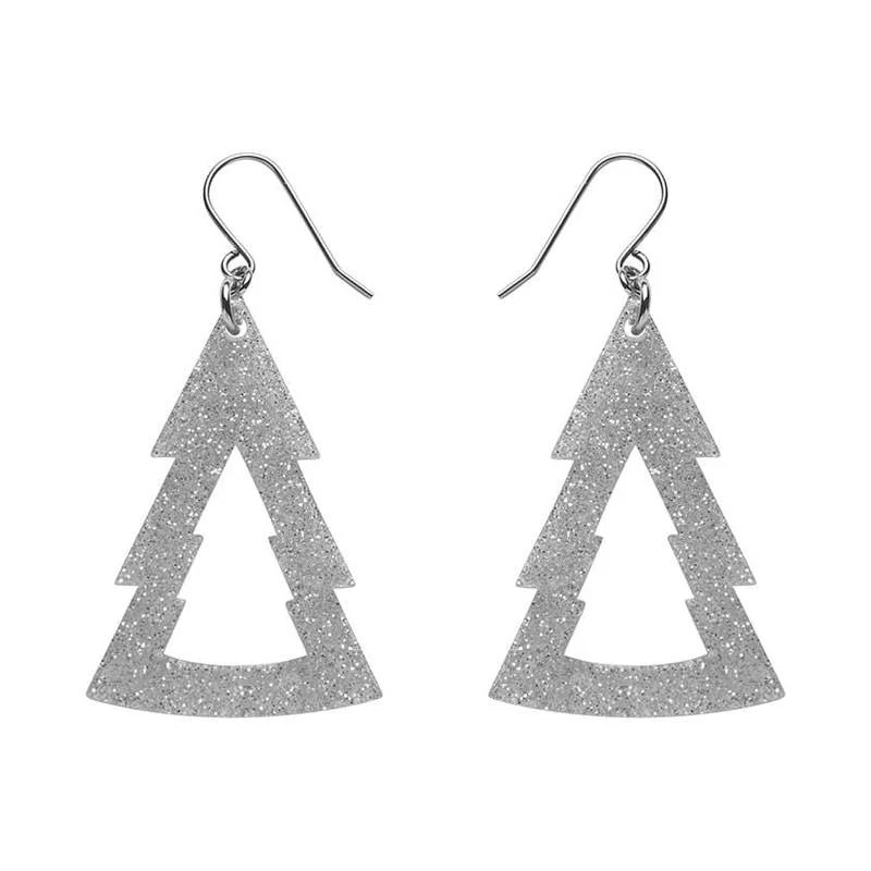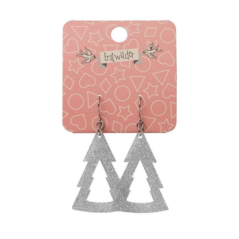 Erstwilder Tree Glitter Resin Drop Earrings – Silver