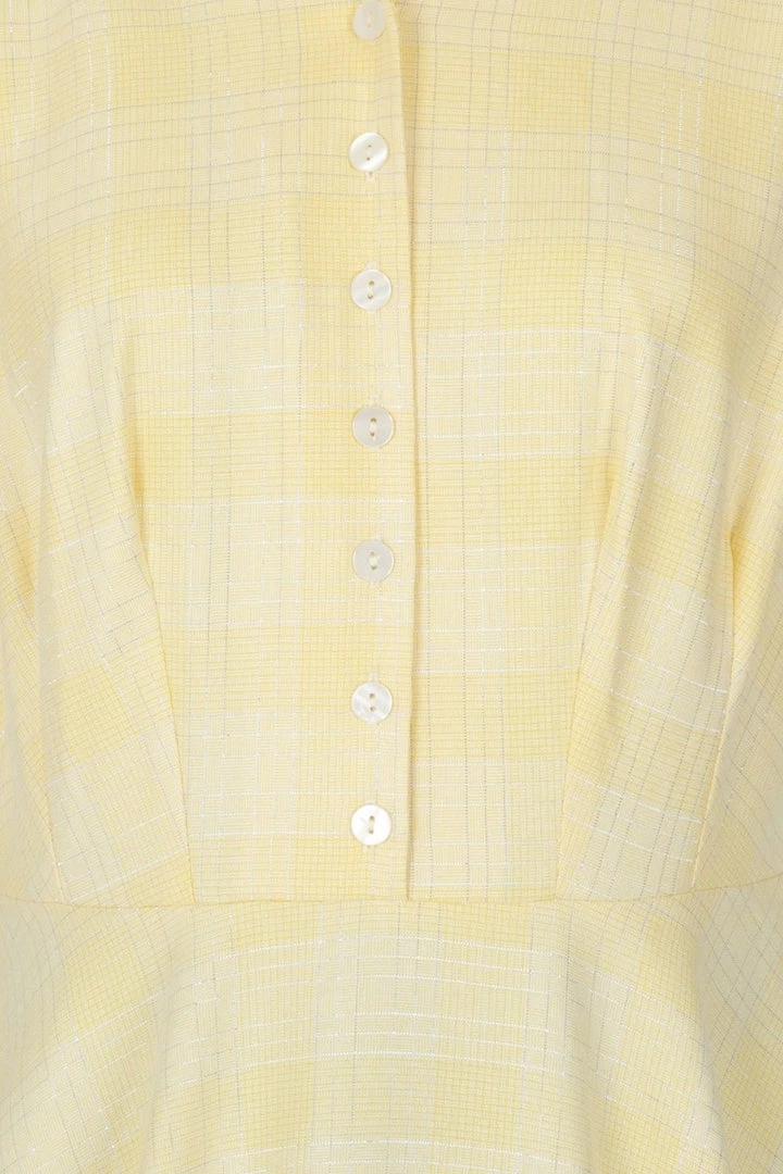 - Yellow & white check dress with sparkly lurex details.