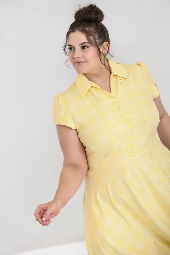 This adorable twist of lemon is a joy to wear! Fashioned after the traditional 50’s housedress, the Joy dress is a delightfully cheery dress you’ll want to wear everyday.