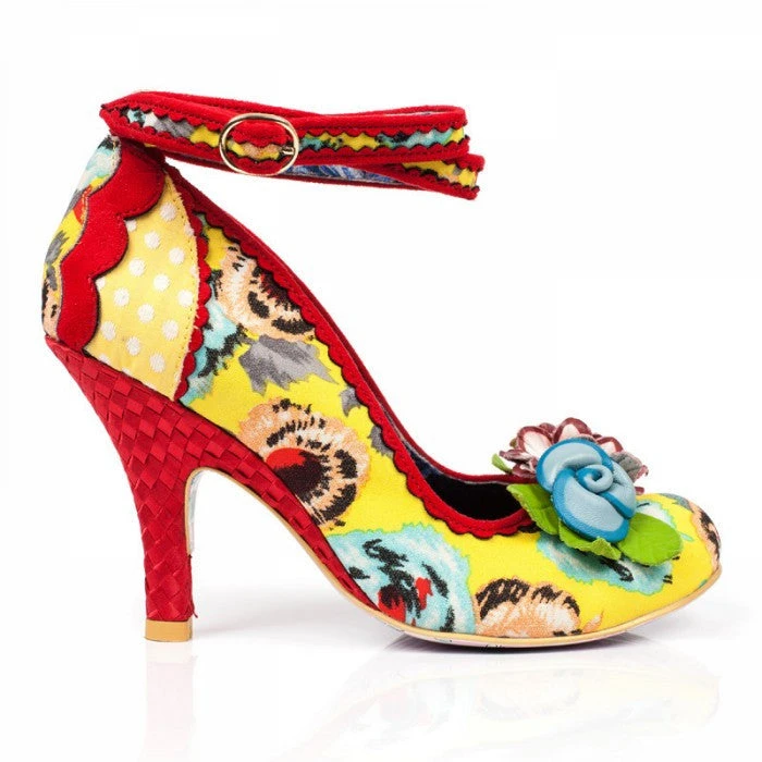 These fabulous floral fancies are the ultimate spring/summer heel, featuring a fabric, floral upper with a polka dot and scalloped detail. A woven heel, buckle fastening ankle strap and PU flower embellishments.