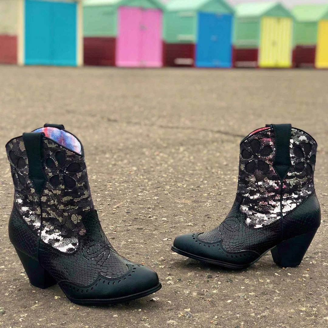 The classic silhouette is reimagined in silver sequins, glossy black faux snakeskin and a smooth black leatherette toe, with stitched detailing really bringing the whole style together!
