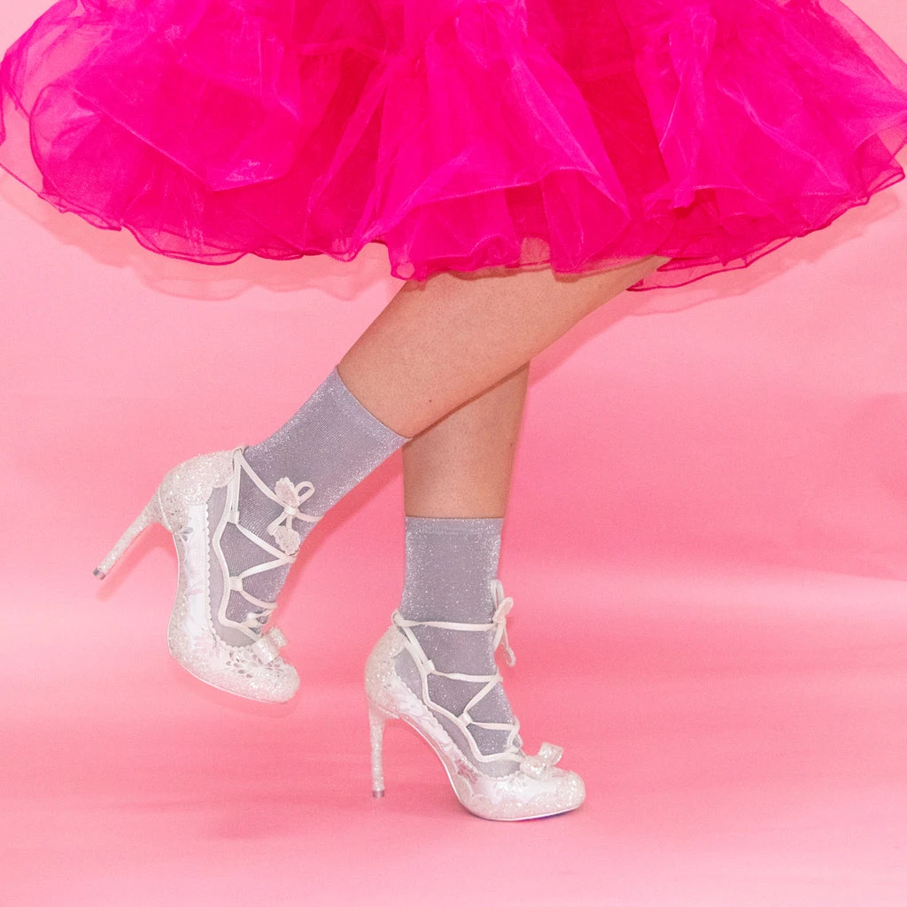 The Velvet Rope by Irregular Choice is a sparkly stiletto dream with a beguiling tie that weaves over the shoe to find itself entwined around your ankle.Â