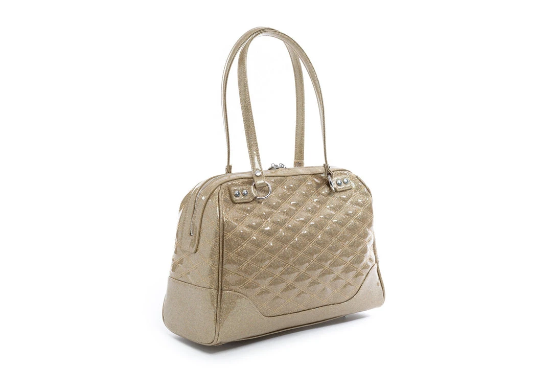 Featuring all-over diamond stitching, Lux logo plate, large silver bullet feet, and oversized detachable skull bauble with rhinestone eyes.