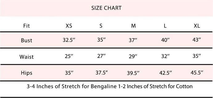 Waist to hem 27inch. Material has 1-2 inch of available stretch above the base measurements in the size chart