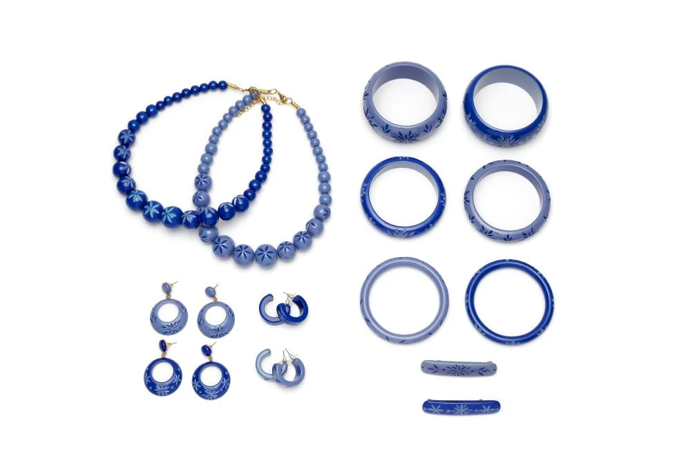 Forget-Me-Not? Forget me never, more like! The vintage inspired Forget-Me-Not Carved Drop Hoop Earrings are a fresh 1950s style light blue, and carved with a delicate floral design. We love pairing it with it’s Duotone petal pal, Cornflower, or perhaps a little clash with a sprinkle of pink fakelite.