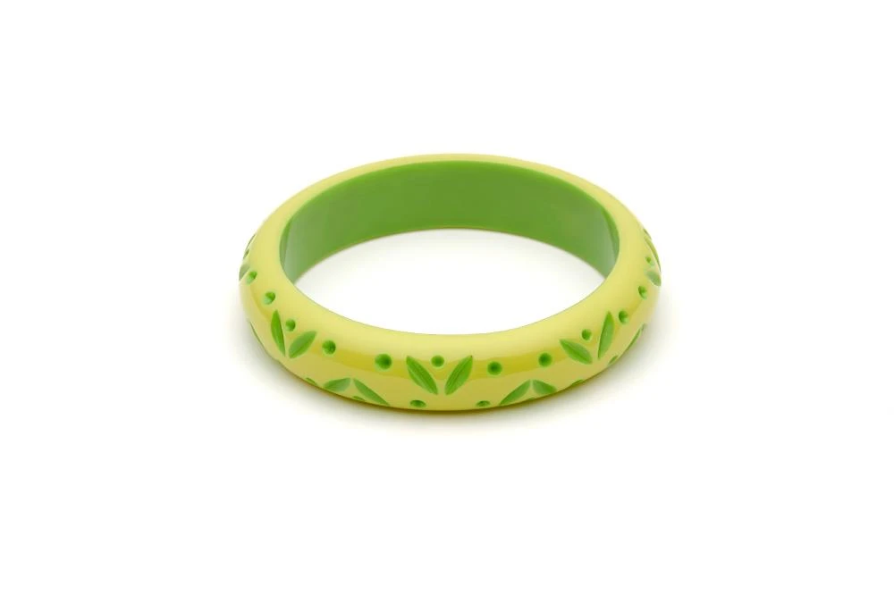 We just can’t peel our eyes off this colourway! The Midi Zest Carved Bangle is a vibrant green, designed to brighten up any fakelite stack. Inspired by the bright colours of the 1950s, this vintage style bangle mixes perfectly with Duotone buddy, Lime, and why not add in a splash of orange fakelite for a really tropical cocktail?