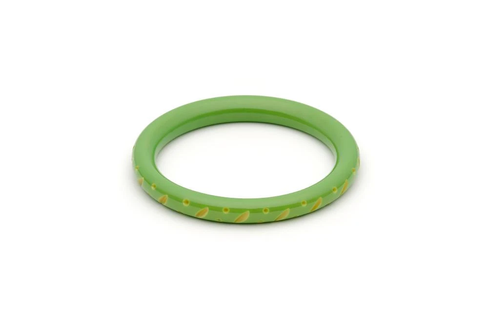 Wow, wow, wow! This is one bright bangle! The Narrow Lime Carved Bangle is a vibrant, kitsch green to add some zing to your 1950s style outfit. We love clashing it with some pink or pair it up with a twist of Zest for even more citrusy sizzle.