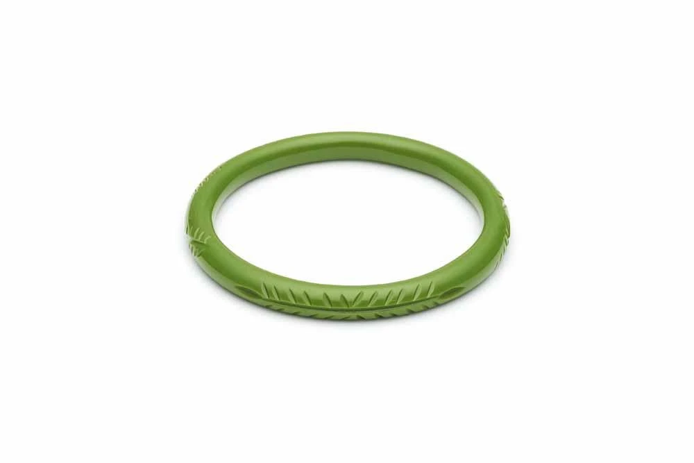 The narrow sister to the large carved green bangle, this little ‘un is a great spacer or included in a stack of narrows.