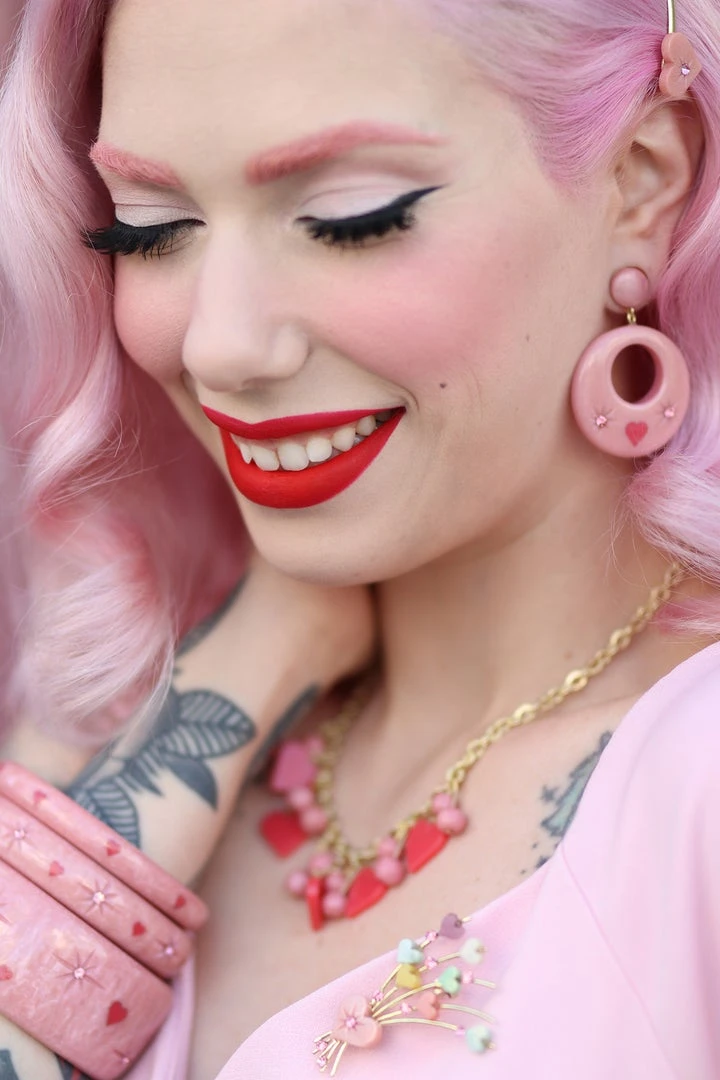 Adding a hair accessory is the simplest way to jazz up a vintage look! The Set of 6 Pastel Hair Slides come in the six gorgeous pastel shades of the new Valentine’s collection. Featuring white Sugar, pink Sweet Cheeks, yellow Honey Bunch, green Sweet Pea, blue Baby Doll and purple Poppet.