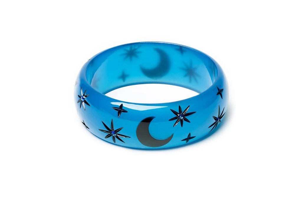 The Wide Wolf Moon Duchess Bangle is a supernatural blue with black moon and starburst details to give this bangle a retro Halloween twist. And it gets better! This entire Halloween collection glows in the dark! Charge up the jewellery and glow get ’em, ghouls!